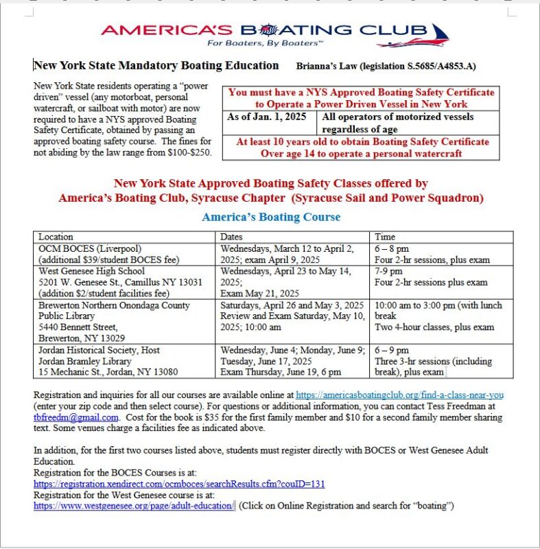 Home › Community News Releases › America’s Boating Club Offers Safety Certificate Courses America’s Boating Club Offers Safety Certificate Courses February 3, 2025 Community Submission Community News Release Share Stay Informed Finger Lakes news, delivered to your inbox every morning. First nameLast nameEmail addressZIP codeSubscribe