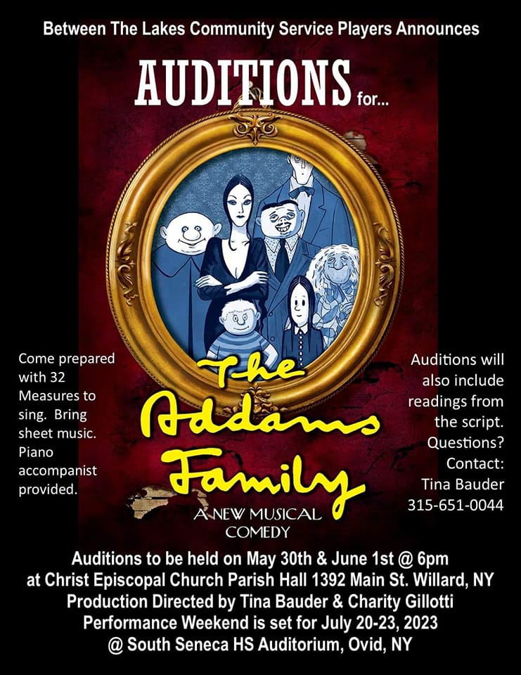 Between the Lakes Community Service Players are holding auditions for the their upcoming production of The Addams Family, a musical comedy.
