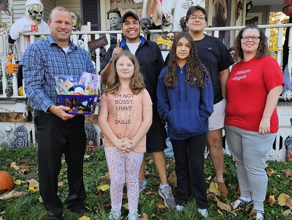 Mayor Jonathan Taylor presented a basket of holiday goodies to the best residential entry, Reesa Santell at 118 Franklin St. He also presented the Pumpkin Trophy to the best business entry, ElderONE, 1000 Technology Parkway. This year, an additional category of “Best Halloween Display” was added. Mayor Jonathan Taylor presented this award to the best business entry, Lisa’s Hair Salon, 622 South Main St. A basket of holiday goodies was given to the best residential entry in this category, Amy Ahlheit, 423 West Ave.