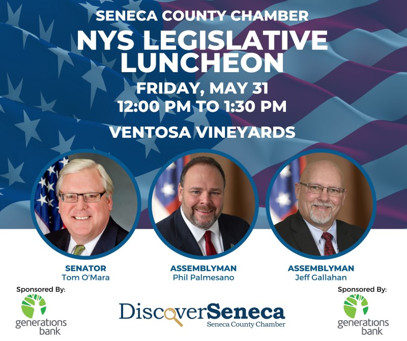 Home › Community News Releases › Seneca County Chamber to Host Legislative Luncheon Seneca County Chamber to Host Legislative Luncheon May 16, 2024 Community Submission Community News Release Share Stay Informed Finger Lakes news, delivered to your inbox every morning. First nameLast nameEmail addressZIP codeSubscribe