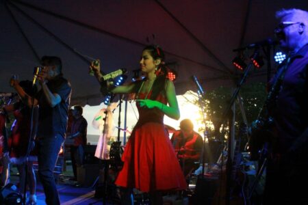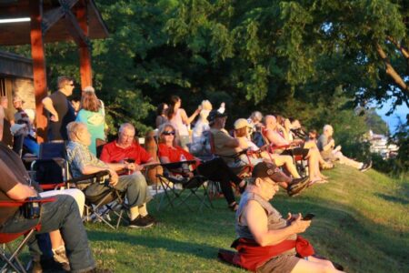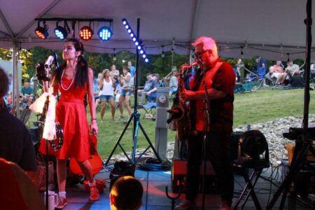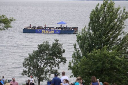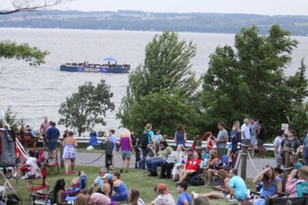 Nate Michaels, and Ruby Shoes entrained the crowd before the fireworks display from a barge anchored in Seneca Lake.