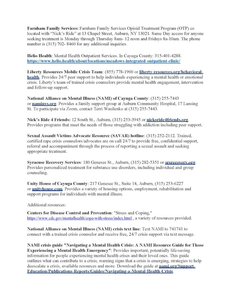With September being Suicide Prevention Month, the Cayuga County Sheriff’s Office and Auburn Police Department are reminding you that help is available.