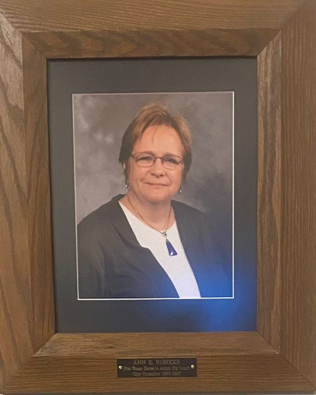 At Thursday’s City Council meeting, a memorial was unveiled in council chambers in honor of Ann Bunker, the first woman elected to Auburn City Council.