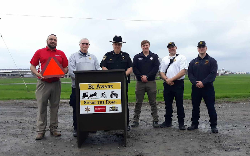 The office is reminding motorists to give extra space to cyclists, horse-drawn carriages, and farm vehicles, especially those displaying the orange slow-moving vehicle triangle.