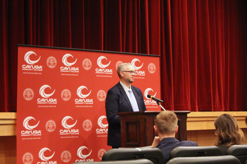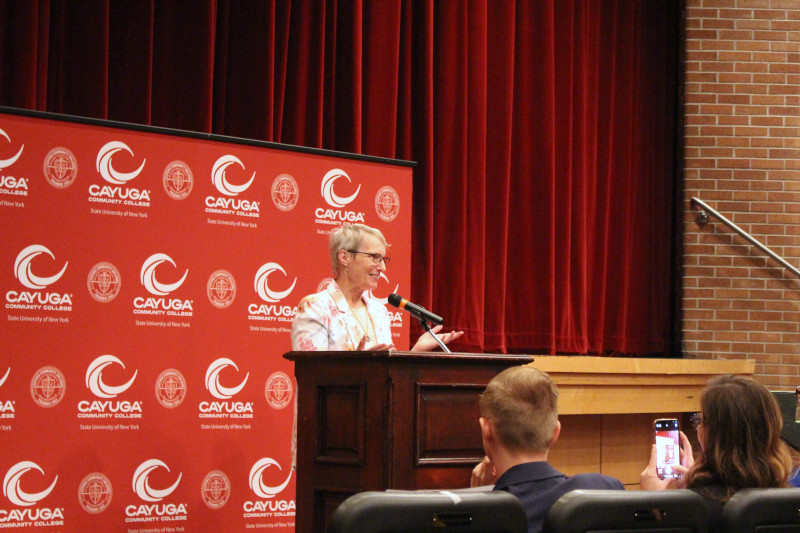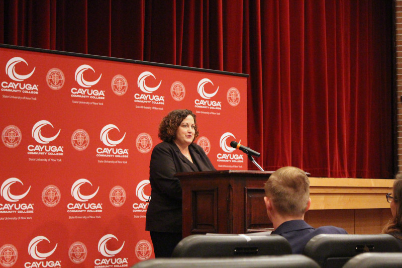 Speakers included CCC President Dr. Brian Durant, SUNY Senior Vice President for Student Success Donna Linderman, State Senator Rachel May, State Assemblyman John Lemondes, CCC ASAP Director Carmela Barbagallo, ASAP student Katie Champaign, and Cayuga County Legislature Chair Aileen McNabb-Coleman.