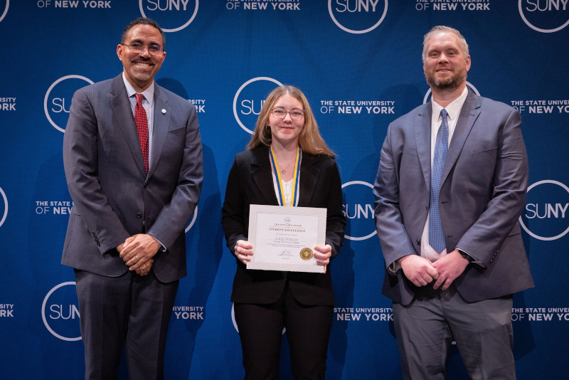 Jorge Jimenez of the Bronx and Julia Wilson of Auburn were among 193 SUNY students who were honored Thursday with the 2024-25 Chancellor’s Award for Student Excellence. CCC said the award is awarded to students who “combine academic achievement with campus involvement, athletic participation, career accomplishment, leadership, and community service.”