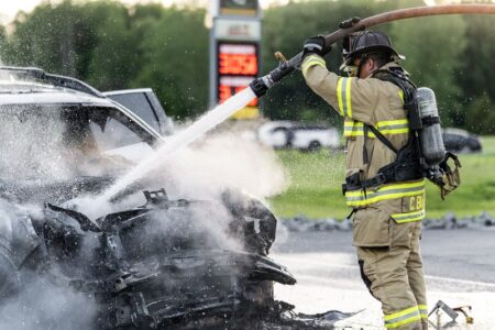 Bianco was able to make it out of the vehicle before it caught on fire. Both Bianco and Farrar were evaluated on scene by Jordan Ambulance and declined transport to the hospital.