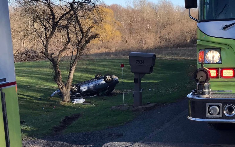 According to the Department’s Facebook page, they responded to the area of 7834 State Street Road for the report of a car on its roof after rolling onto a private lawn.
