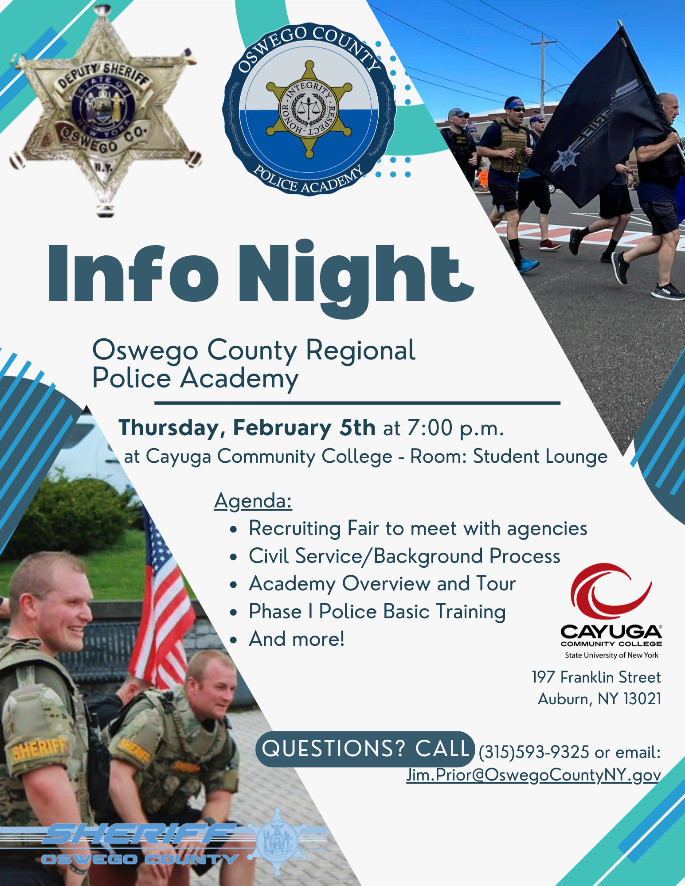The Oswego County Regional Police Academy is hosting an information night this week at Cayuga Community College in Auburn.