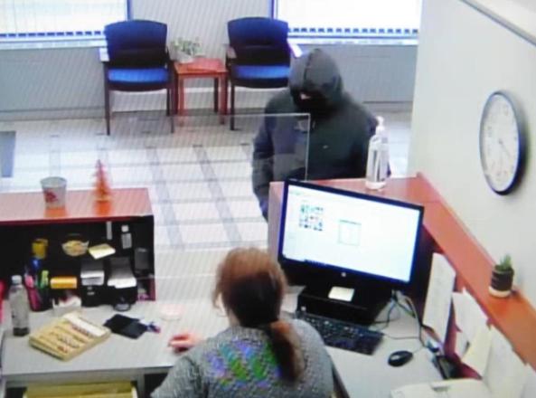 The suspect was described as a male wearing a black cloth mask, a grey jacket, and grey pants.