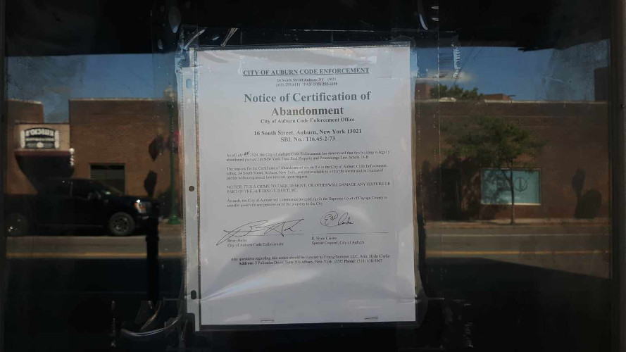 The city will commence proceedings in Cayuga County Supreme Court to acquire possession of the 16 South Street property.