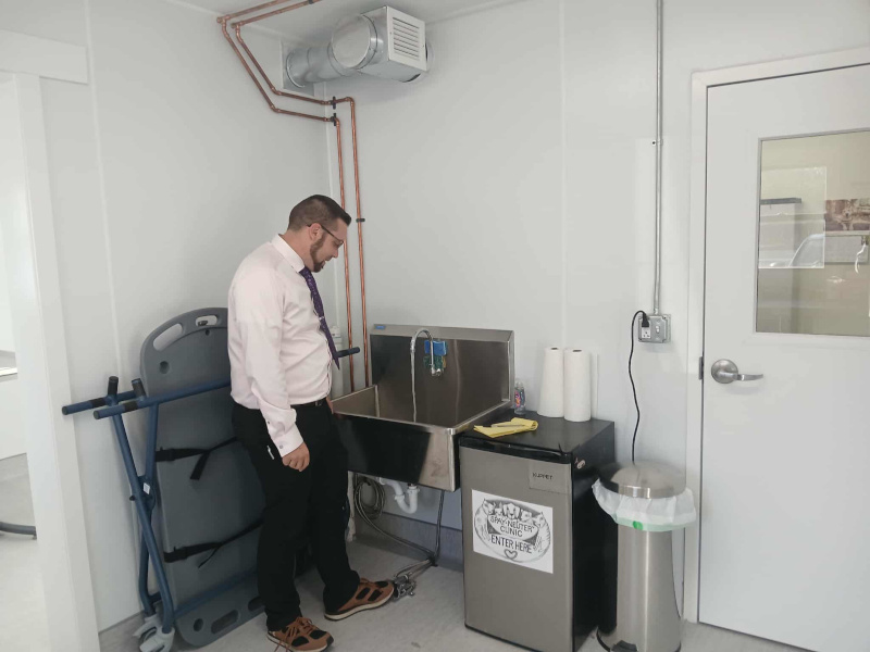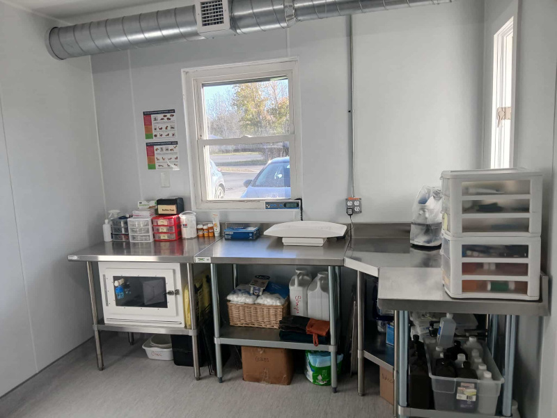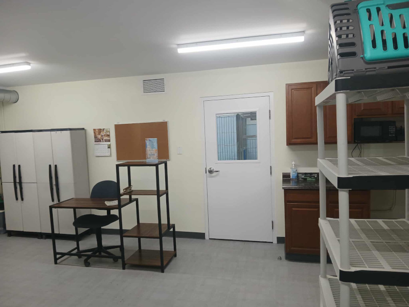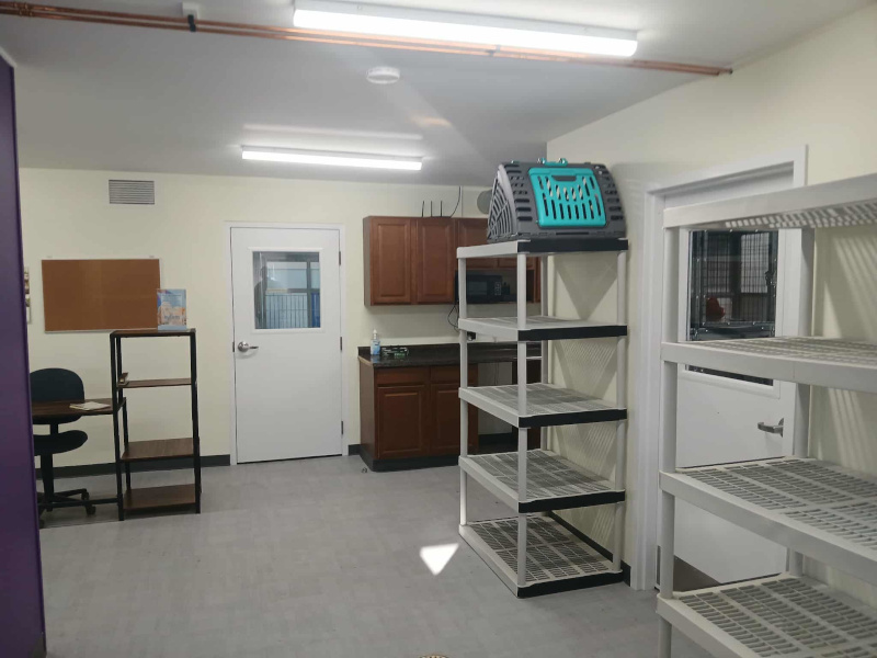 - FRP walls and special flooring in the cat room, exam room, and surgery rooms, making them easier to clean and sanitize than standard drywall or flooring.