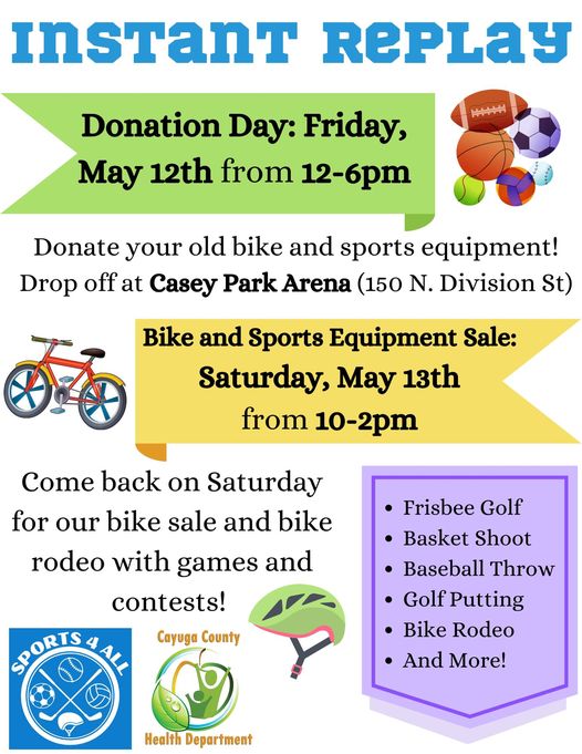 Sports 4 All and the Cayuga County Health Department’s Instant Replay event is returning to Casey Park this week.