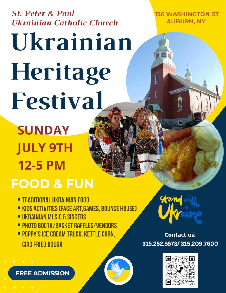 The Ukrainian Heritage Festival will return to Saints Peter and Paul Ukrainian Catholic Church this Sunday from 12:00-5:00p and feature traditional Ukrainian food and music, vendors, raffles, and kids activities.