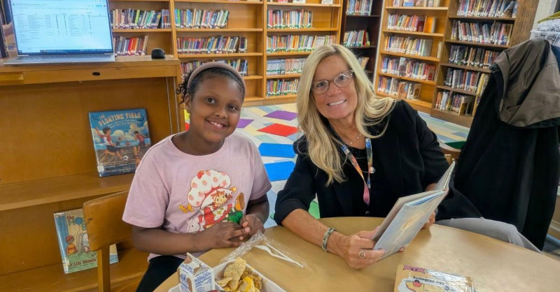 The program is designed to improve students’ literacy skills, social skills, and attendance by pairing second graders with community volunteers. Students in the program are identified by their teachers early in the school year, while potential volunteers are vetted by both United Way and the district. Twice a month, the students and volunteers meet in the school library to read together during lunch.