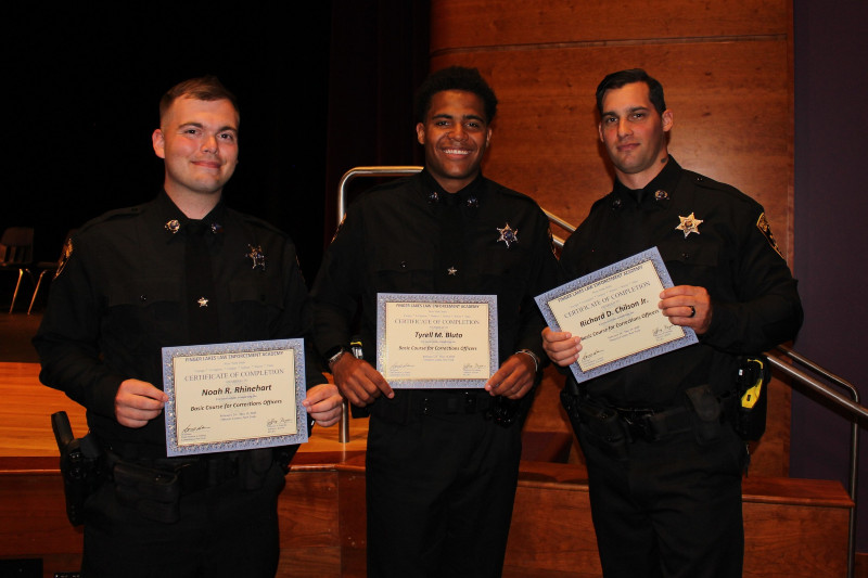 Three members of the Seneca County Sheriff’s Office graduated from the Basic Course for Correction Officers hosted by the Finger Lakes Law Enforcement Academy. The graduating members were Correction Officer Tyrell Bluto, Correction Officer Richard Chilson, and Correction Officer Noah Rhinehart.