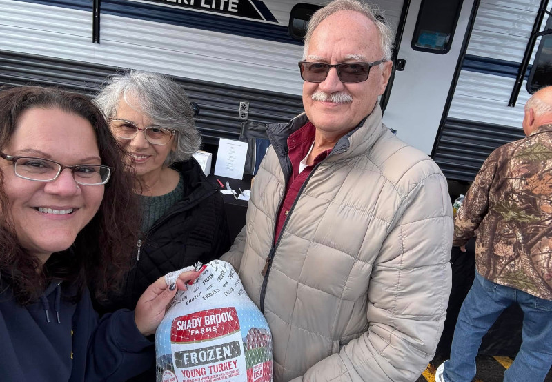 The turkey drive runs through noon on Sunday in the Walmart parking lot in Waterloo. Shoppers can buy frozen turkeys inside Walmart and bring them directly to the RV and freezer setup on site.