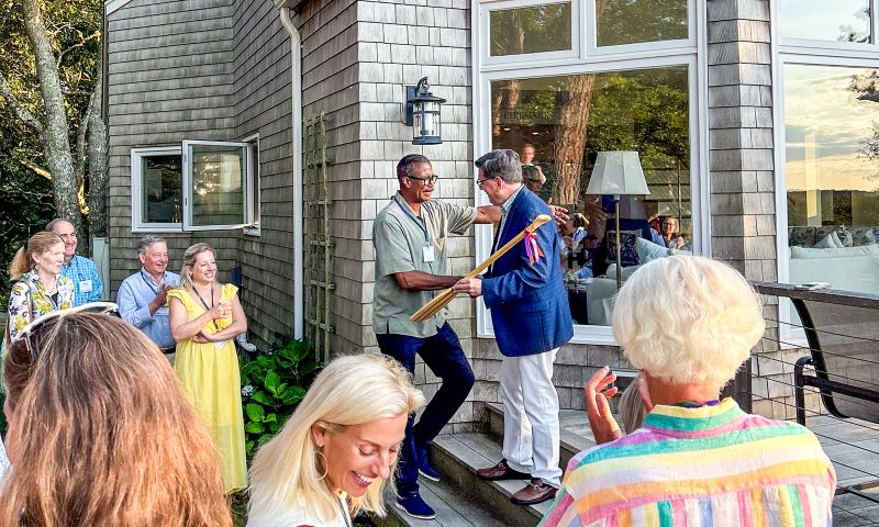 “I have had the pleasure of working with Bill for many years through his leadership on the Board of Trustees and his gracious and generous service to the Colleges. I know the tremendous affection he has for his alma mater and the dedication he brings to his service to our community. It is wonderful to see his longstanding commitment to Hobart and William Smith recognized by his fellow alums,” says President Mark D. Gearan, who presented Whitaker with the award at the reception on Martha’s Vineyard, Mass., hosted by David and Jane Blum Ebby ’84, P’18 and Bailey Ebby ’18.