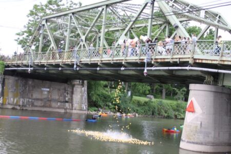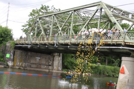 13-hundred rubber ducks floated down the Cayuga-Seneca Canal yesterday as the final event of the three-day Seneca Falls Canal Fest.