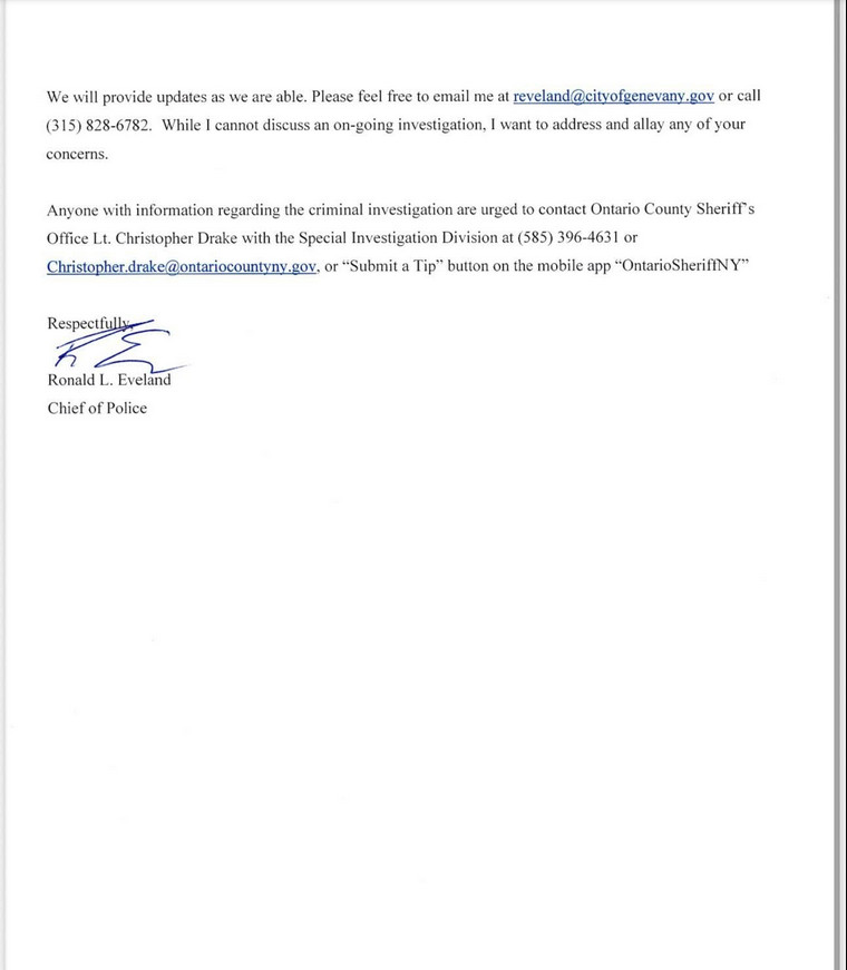 Below is a letter Chief Eveland posted on the City of Geneva’s Facebook page: