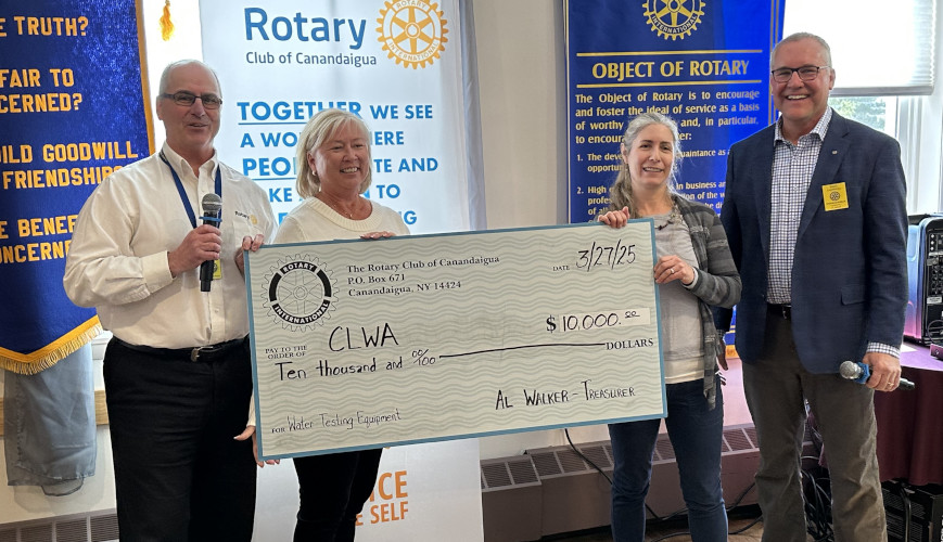 “We are deeply grateful to the Rotary Club of Canandaigua for their generous support and shared commitment to protecting Canandaigua Lake,” said Susan Martenson, President, CLWA Board of Directors. “This collaboration exemplifies the power of community partnerships. Together, we’re not only safeguarding a vital natural resource but also working to inspire the next generation to continue this important work.”