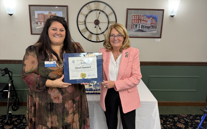 State Senator Pamela Helming joined residents, staff, and community leaders to mark the 25th anniversary of Quail Summit, a leading senior living community in the Finger Lakes region.