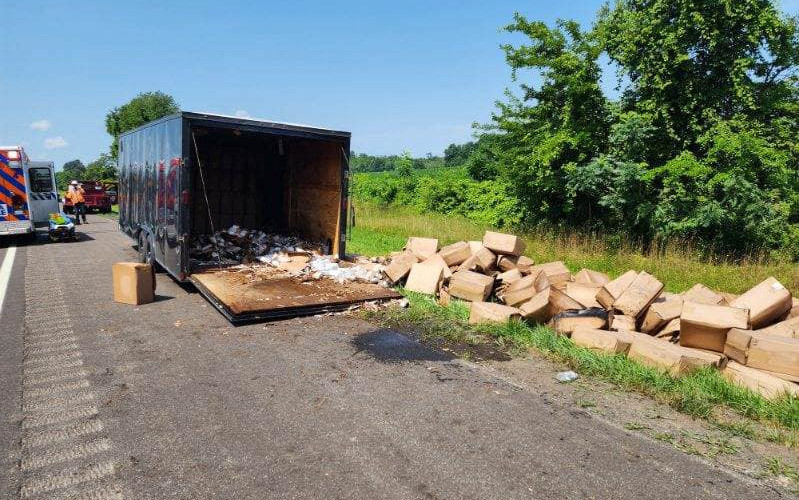 According to the Clyde-Galen Fire District, crews responded to the area of Mile Marker 326 westbound on the Thruway for the report of a detached trailer on fire.