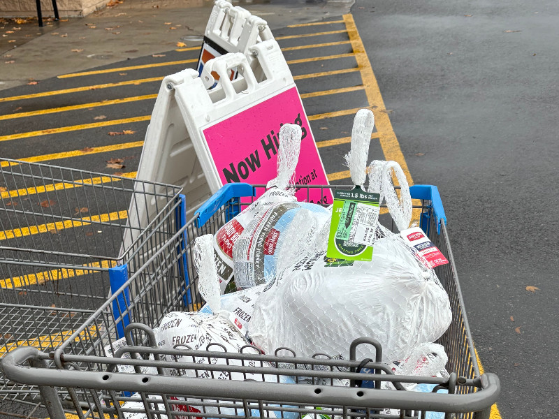 Shoppers were encouraged to purchase frozen turkeys inside Walmart and drop them off directly at the RV and freezer setup. Donors who were unable to make it in person were still able to make purchases online through the Catholic Charities website.