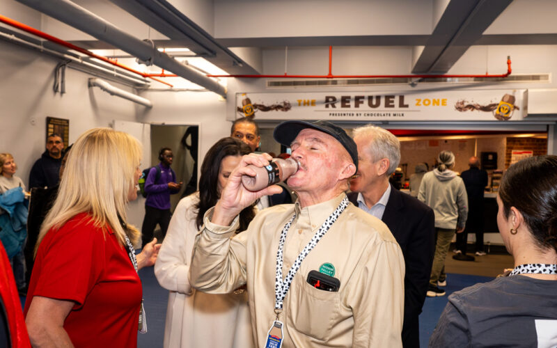 Through a partnership with The Armory, dairy farmers, represented by the American Dairy Association North East, promote chocolate milk as the ultimate post-exercise recovery beverage. In addition to sponsoring the Refuel with Chocolate Milk Officials Hall of Fame Invitational, the association engages athletes through branding, signage, and chocolate milk sampling. They also sponsor the Refuel Zone at The Armory, where athletes and spectators can purchase chocolate milk to recharge after competition.
