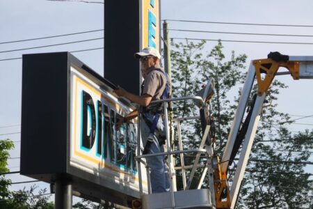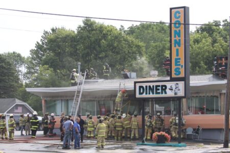 Waterloo’s iconic diner- Connies- cwelbrates a new sign, then they had a fire that shut them down for a couple of months.
