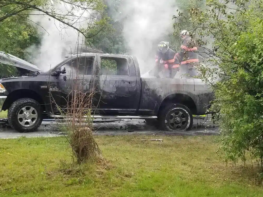 No details have yet been released, but a fire destroyed a pickup truck Saturday at Cayuga Lake State Park.