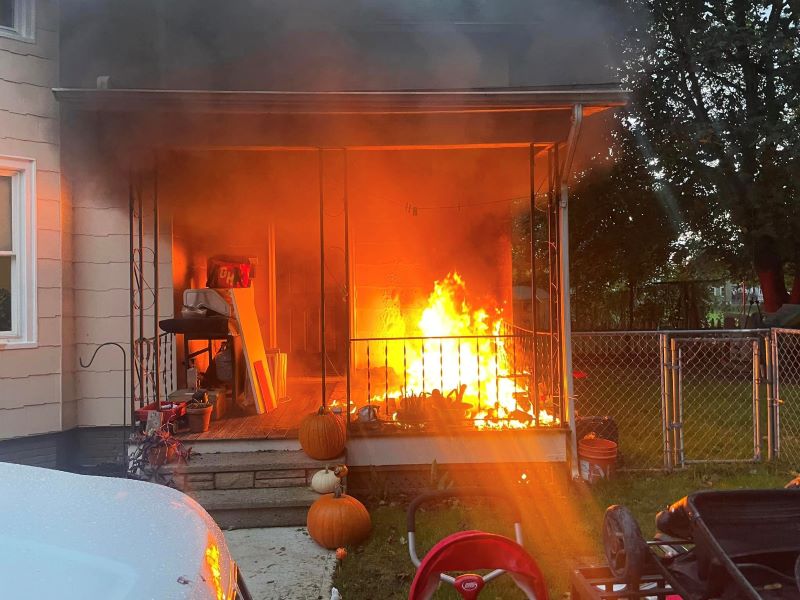 Firefighters extinguished a porch fire in the city of Geneva Tuesday morning. The blaze at 57 John Street was quickly put out and damage was contained to the porch area of the home. No other details have been released at this time.