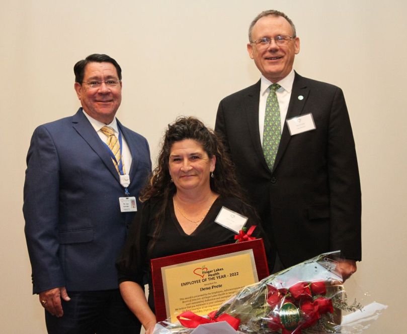 The Employee of the Year Award recognizes an employee that sets the standard for excellence. This year’s award was presented to Dena Prete, Unit Clerk, at Living Center at Geneva South, on Unit 1. She has been with Finger Lakes Health for the last thirty years.