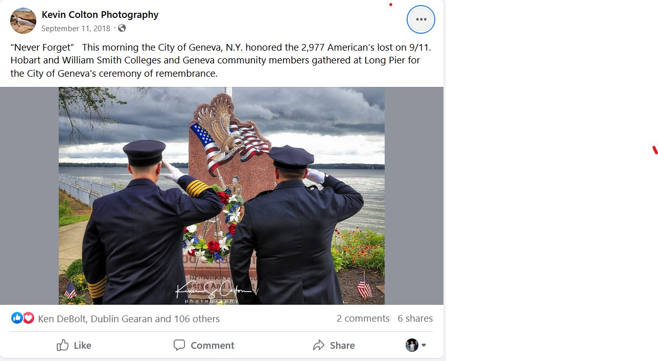 In Geneva the ceremony takes place at the foot of Long Pier in Lakefront Park. A number of dignitaries will speak at the ceremony, and the city Fire Department’s Color Guard will participate. Many city offices will be closed from 9:45-11 a.m. so employees can attend the ceremony.