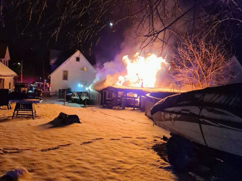 Crews arrived to find a detached garage behind a home fully involved. Firefighters pulled hose lines and were able to keep the flames from spreading to the house.