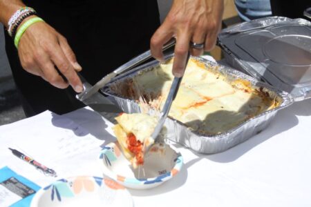 The lasagna was handed out Sunday from the Club 86 parking lot.
