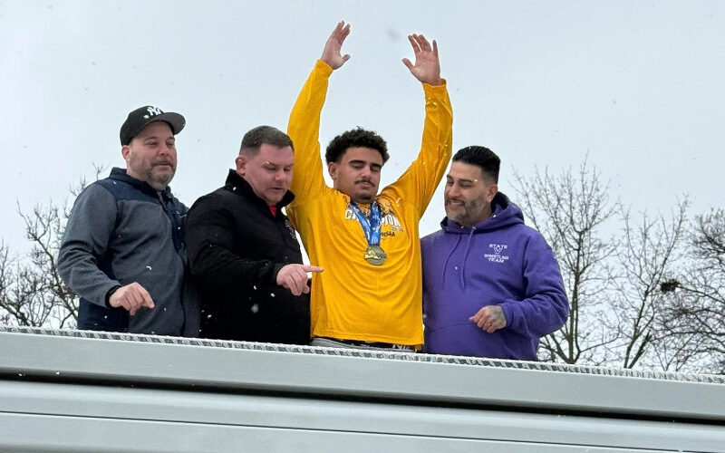 Velazquez returned home Sunday to a hero’s welcome, riding atop a Geneva fire truck alongside his coaches and teammates as the community celebrated his championship victory.