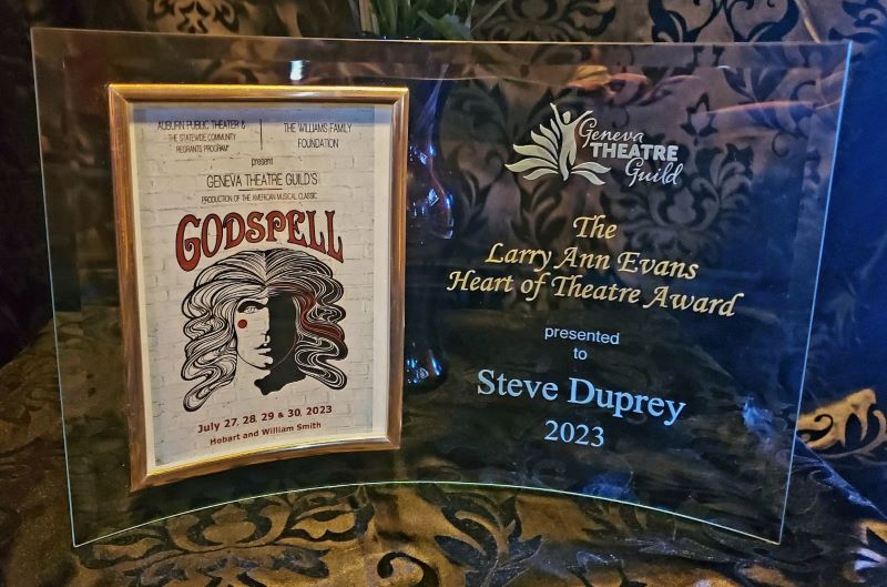 Steve Duprey, award-winning local artist and director of the Geneva Theatre Guild’s 2023 mainstage production of “Godspell,” was the recipient of the 2023 “Larry Ann Evans Heart of Theatre Award.”