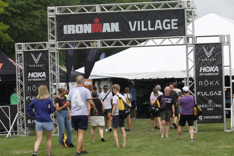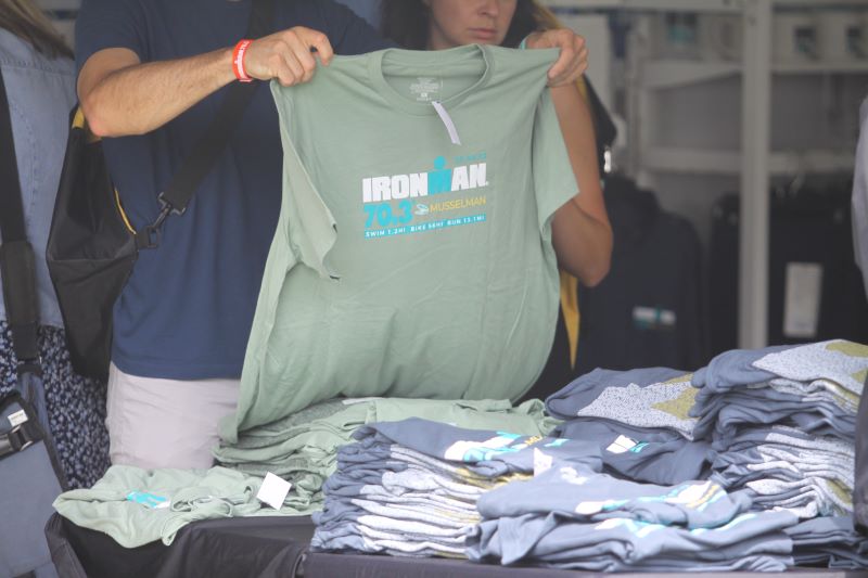 The IRONMAN Village set up on the Geneva lakefront offers everything from running shoes, shirts, water bottles, sunglasses, and more for sale before this weekend’s Musselman race.