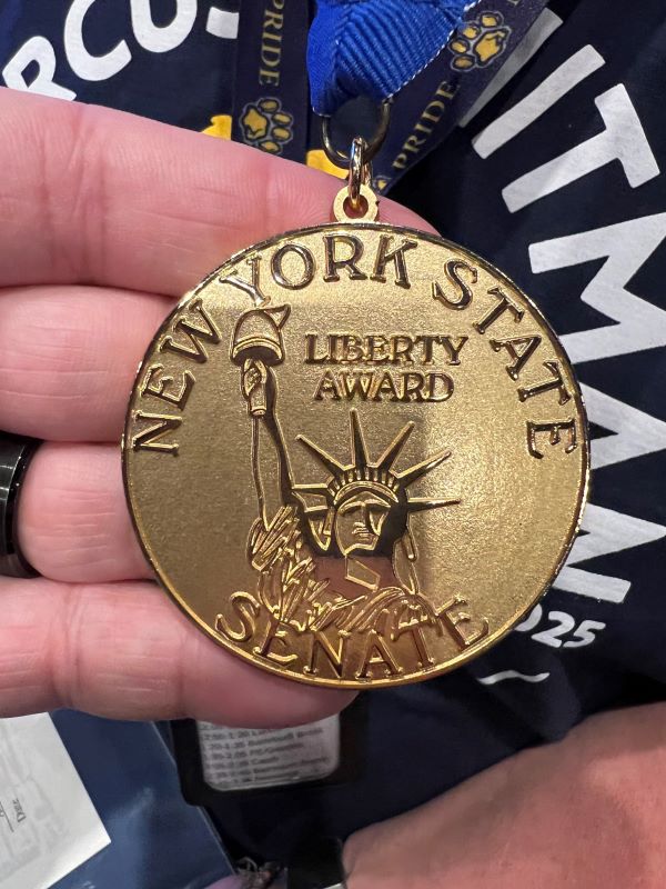 The Liberty Medal is awarded to individuals who have earned special commendation for exceptional, heroic, or humanitarian acts on behalf of their fellow New Yorkers. It is the highest civilian honor that can be bestowed upon an individual by the New York State Senate.
