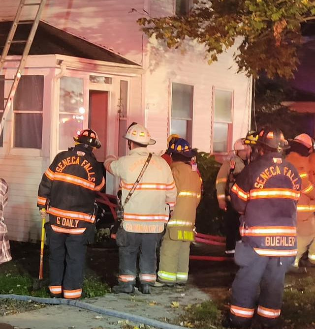 Seneca Falls Engine 1, Quint 1, Engine 3, and Squad 52 responded, with the first crew — Assistant Chief Larsen, Assistant Chief Daily, Captain Donato, and Firefighter Pickard — making an “excellent hit” on the fire inside the home, according to the department.