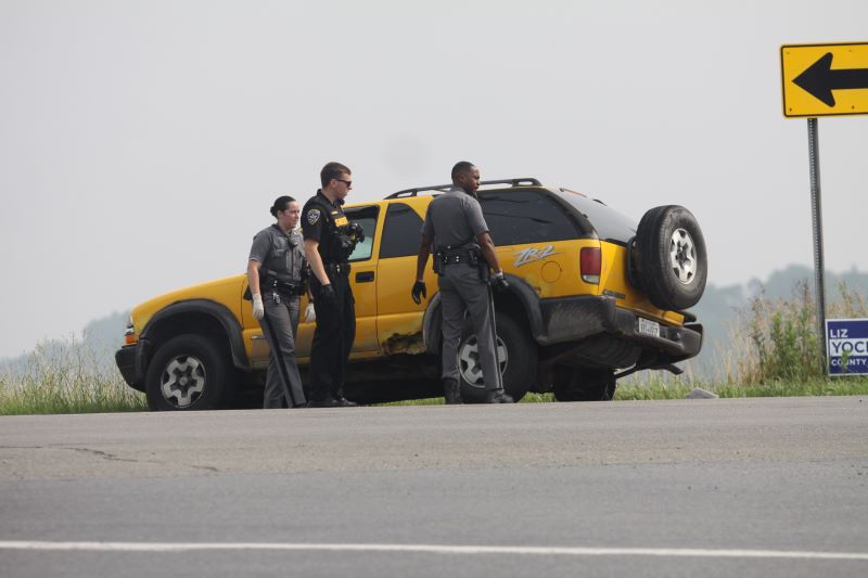 Police were chasing the yellow SUV for several miles at speeds of around 60 or more miles per hour. The chase ended after the SUV ran over a spike strip.