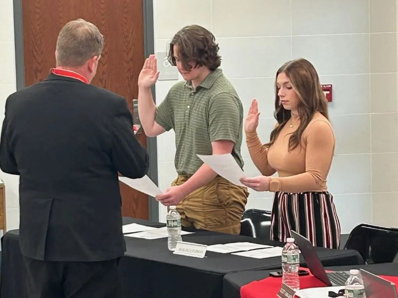 High School Principal Bryon George and Superintendent Chris Barnard worked together to develop a selection process, interviewing juniors and seniors for the two board positions. After careful consideration, seniors Randy Allen and Makayla Furman were selected to serve as Red Jacket’s inaugural Student Board Members. They were officially sworn in during the Board of Education meeting on October 17th.
