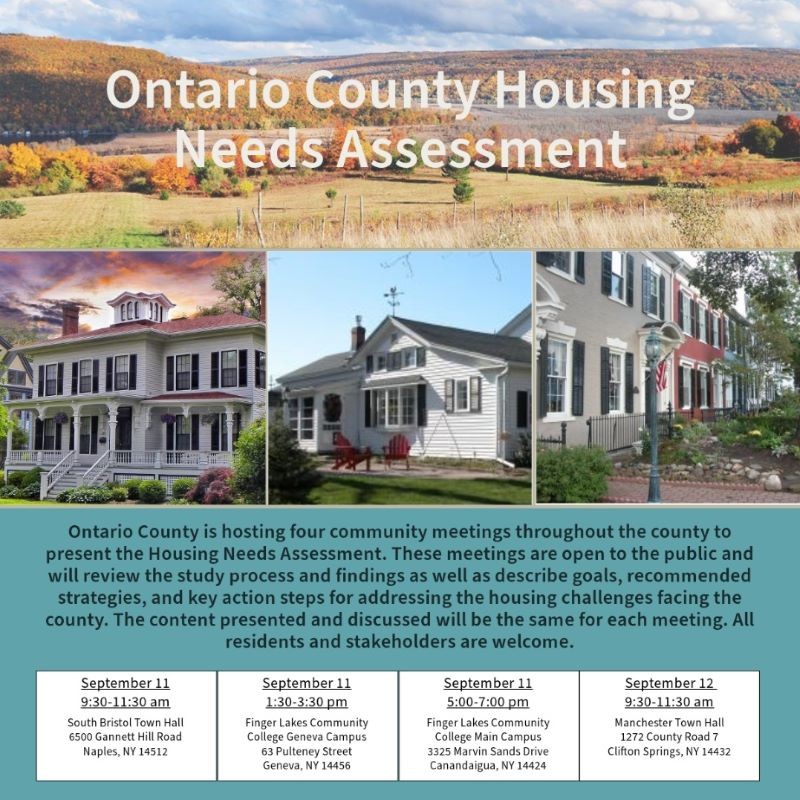 After a comprehensive year-long process, Ontario County is completing the county-wide Housing Needs Assessment with its consultant Urban Partners. The Housing Needs Assessment kicked off late last year with the purpose of providing data to stakeholders about the current housing stock and new construction activity, identifying existing and anticipated housing needs to highlight disparities between availability and need, identifying the factors contributing to that disparity, and developing strategies to address those factors.