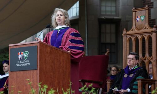 Former TIME Editor in Chief, presidential historian and Harvard professor Nancy Gibbs urged members of the Hobart and William Smith Class of 2025 to apply the knowledge they gained as students to focus on sources of information that truly deserve their attention. She urged graduates to become responsible stewards of their attention in an age dominated by digital noise and misinformation.