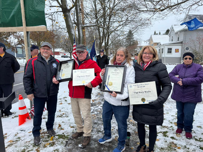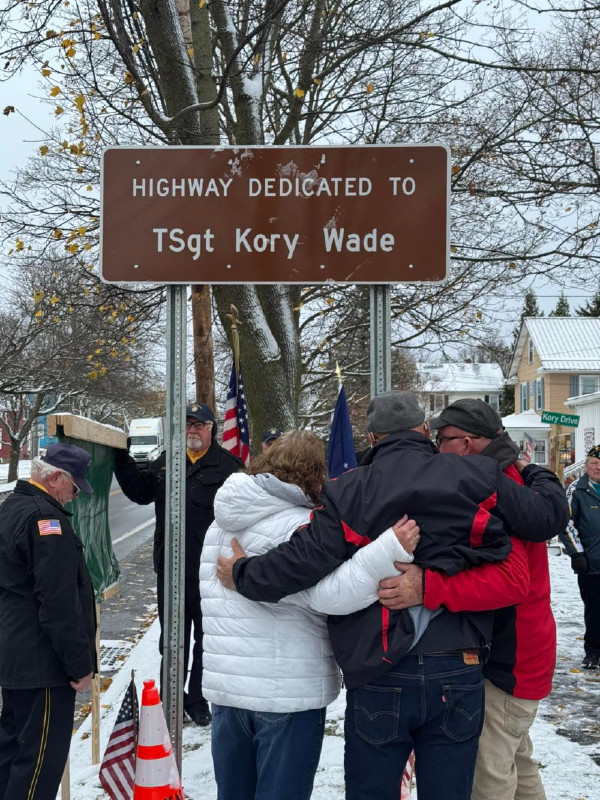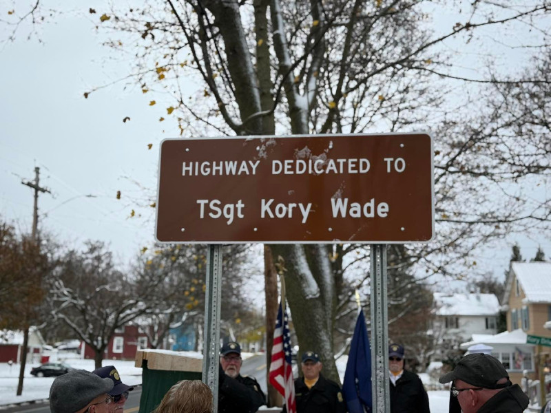 The section from Route 96 to Latting Road in Manchester has been officially renamed the “Highway Dedicated to TSgt Kory Wade.” One of the dedication signs was placed in front of the residence in Manchester, where Wade grew up. Assemblyman Jeff Gallahan sponsored the bill honoring Wade, a Manchester native and a 2008 graduate of Red Jacket High School.