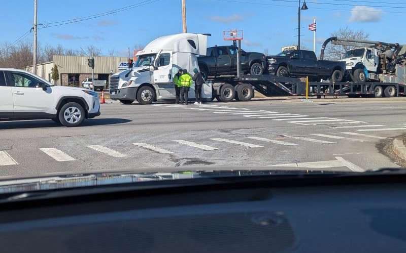 Police say the tractor-trailer was stopped for a red light on Airport Road when the Freightliner truck rear-ended it. No injuries were reported. The driver of the truck, Kevin Widzinski, of North Chili, was ticketed for following too closely.