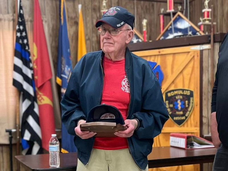 According to a post on its Facebook page, “With profound respect and appreciation, Tom Bennett was presented with an award to honor 50 years of selfless service to the community. We thank you for your bravery, commitment, and making a difference. Thank you for your extraordinary service and dedication to the Romulus Fire Department.”