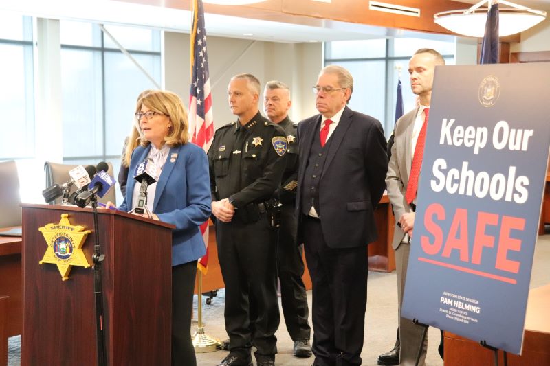 Standing alongside law enforcement and school leaders on Friday, State Senator Pam Helming said she is pushing for legislation requiring state agencies to notify local authorities when a felony offender under 18 is released from state custody. Senator Helming said it is to help law enforcement agencies and school districts better prepare and protect students and public safety.