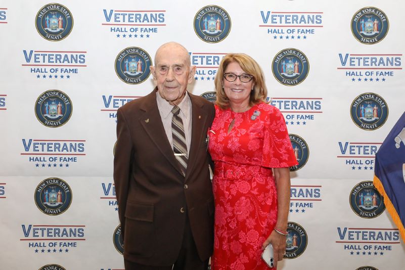 Senator Helming said, “Less than one percent of the 16 million Veterans who served during World War II are with us today. We should know their stories and that’s why I’m so honored to recognize Mr. Becker in this way. He is a deeply humble man and a family man deserving of our appreciation and respect. Mr. Becker shared that his time in the military taught him to respect authority, get along with people, be patient, and appreciate what you have. He said what he loves most about America is our freedom. And we enjoy those freedoms because of Veterans like Mr. Becker. I am grateful that his name is now enshrined in the New York State Senate Veterans Hall of Fame.”